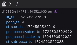 type Output = { sf_ts: bigint; pecp_ts: bigint; get_pecp_system_ts: bigint; get_pecp_header_ts: bigint; sf_start_ts: bigint; sf_sub_pecp_ts: bigint;};-